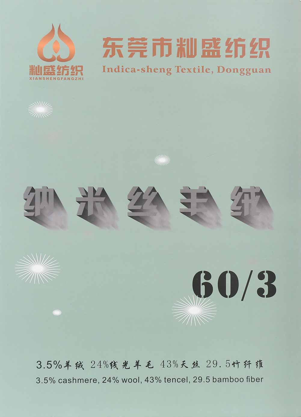 3.5%羊绒Cashmere 24%线光羊毛Wool 43%天丝Tencel 29.5%竹纤维Bamboo fiber