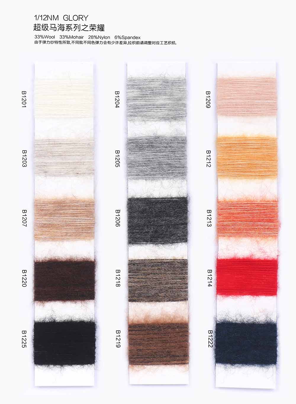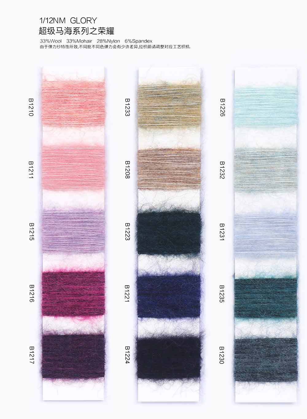 33%羊毛Wool 33%马海毛Mohair 28%尼龙Nylon 6%氨纶Spandex