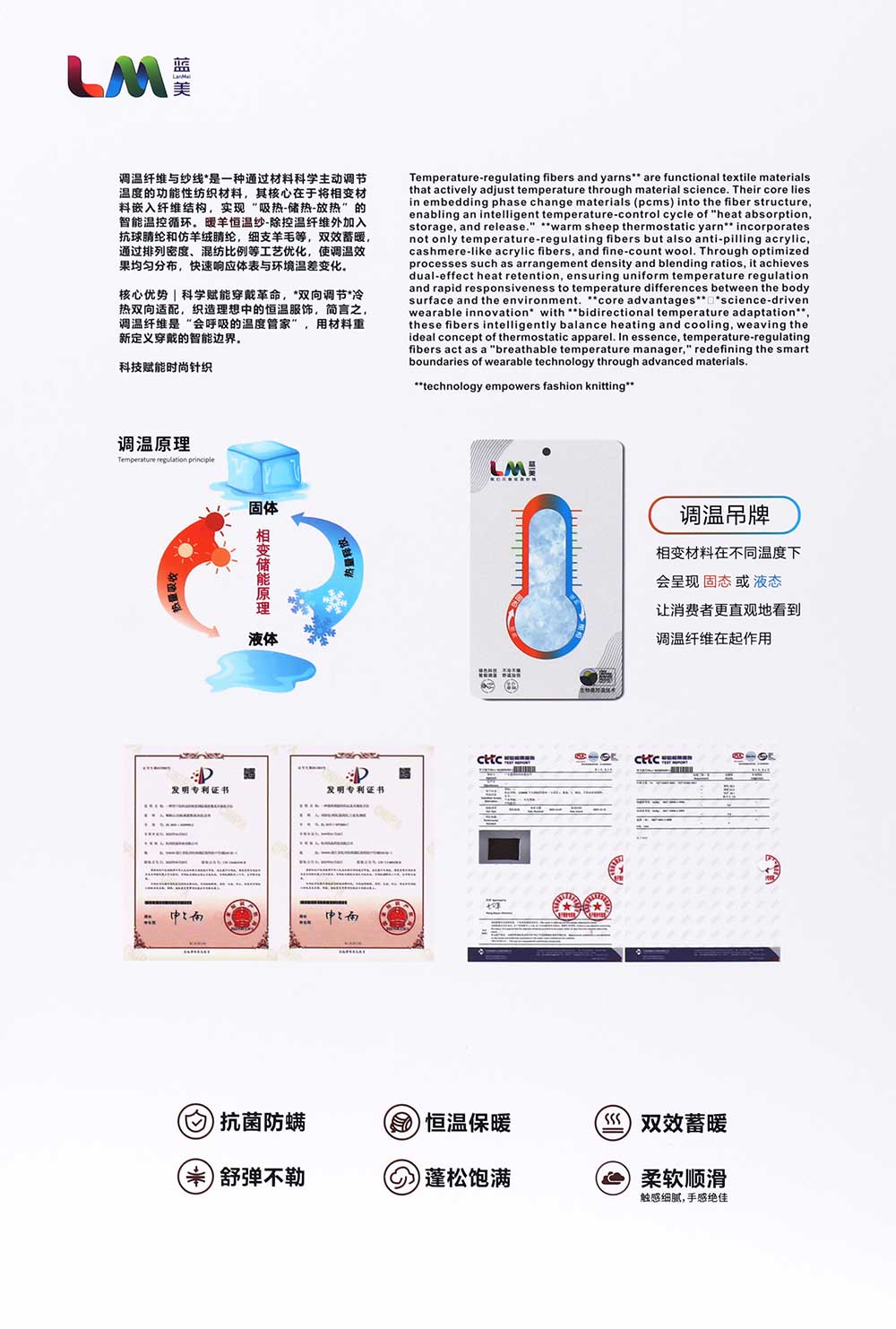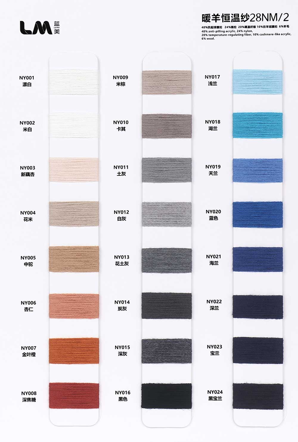 20%调温纤维Temperature-regulating fiber 26%抗起球腈纶Anti-pilling Acrylic 26%腈纶Acrylic 20%锦纶Nylon 8%羊毛Wool