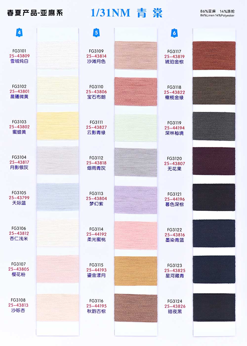 86%亚麻Linen 14%涤纶Polyester
