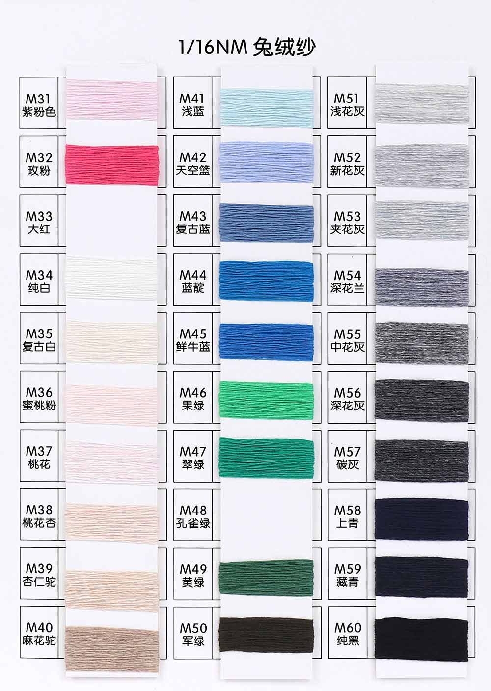 3%兔绒Angola 12%尼龙Nylon 40%粘胶Viscose 45%涤纶Polyester